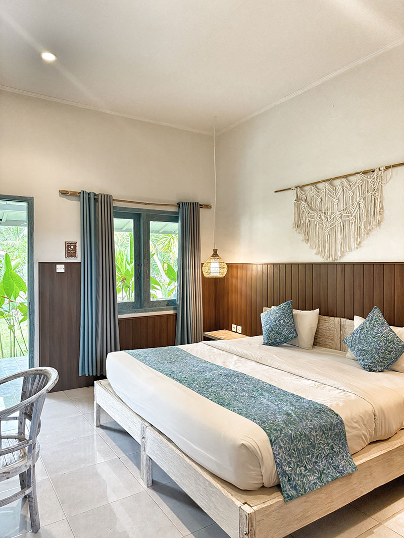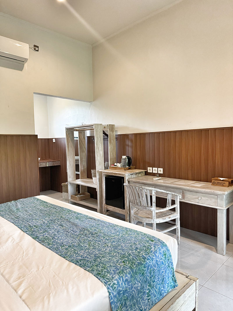 Step into warm, understated comfort in our Udyana Superior, where modern simplicity meets natural texture. Designed with clean lines and a calming palette, the room features elegant wood wall finishes that add a touch of organic charm and coziness. The rooms comes with all the amenities you need to make your stay as comfortable as possible: